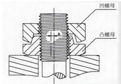 HARDLOCK是雙螺母(見圖3),內(nèi)螺母外側(cè)設(shè)有偏心的突起;外螺母為普通螺母結(jié)構(gòu),其內(nèi)側(cè)設(shè)有同心的凹槽;外螺母備緊時(shí)內(nèi)螺母的外側(cè)凸起與螺栓不同心,內(nèi)螺母的偏心突起與螺栓受到外螺母的擰緊擠壓產(chǎn)生徑向力,相當(dāng)于在螺紋間隙中增加了鍥子,螺紋全方位鎖緊。